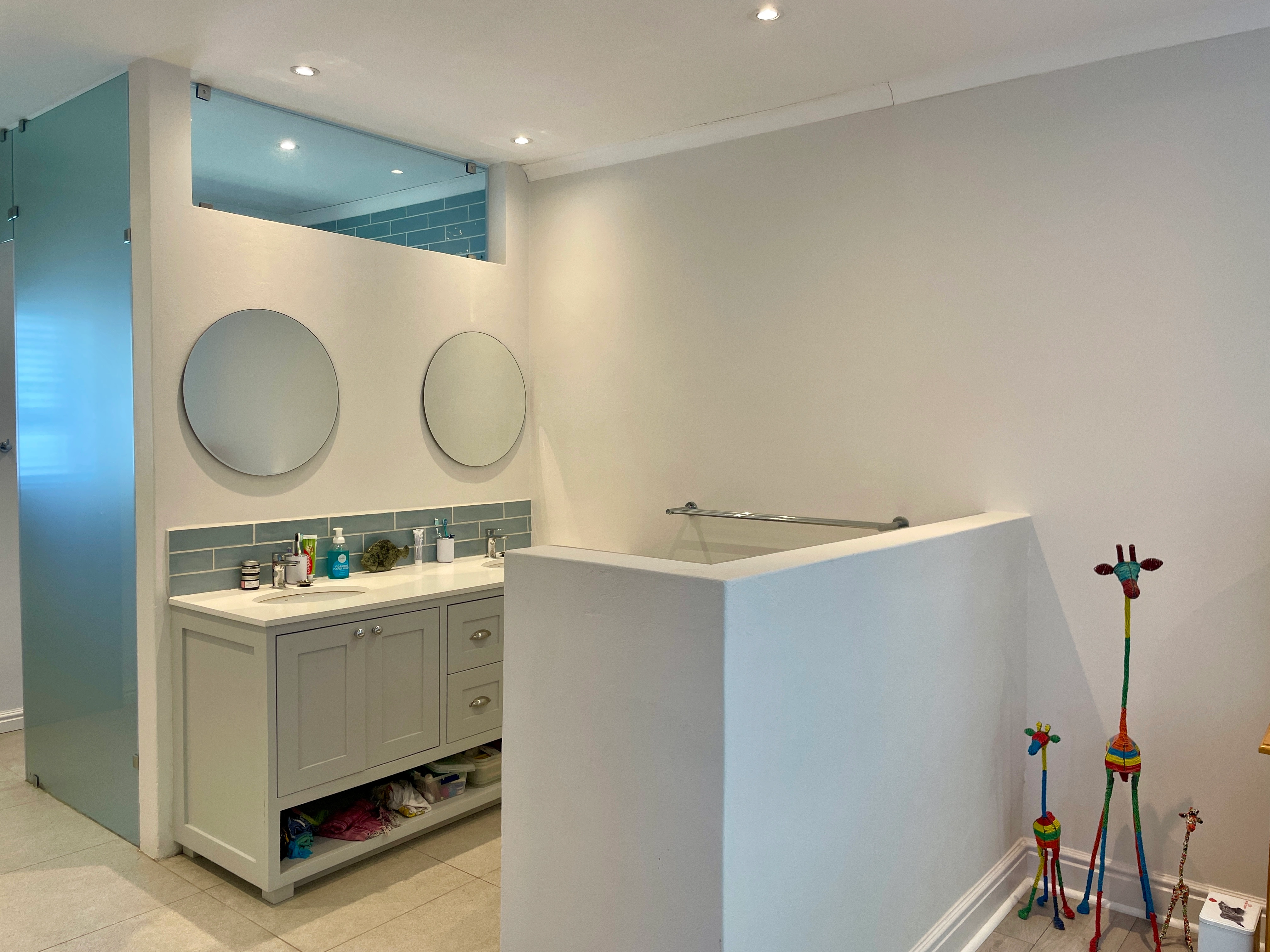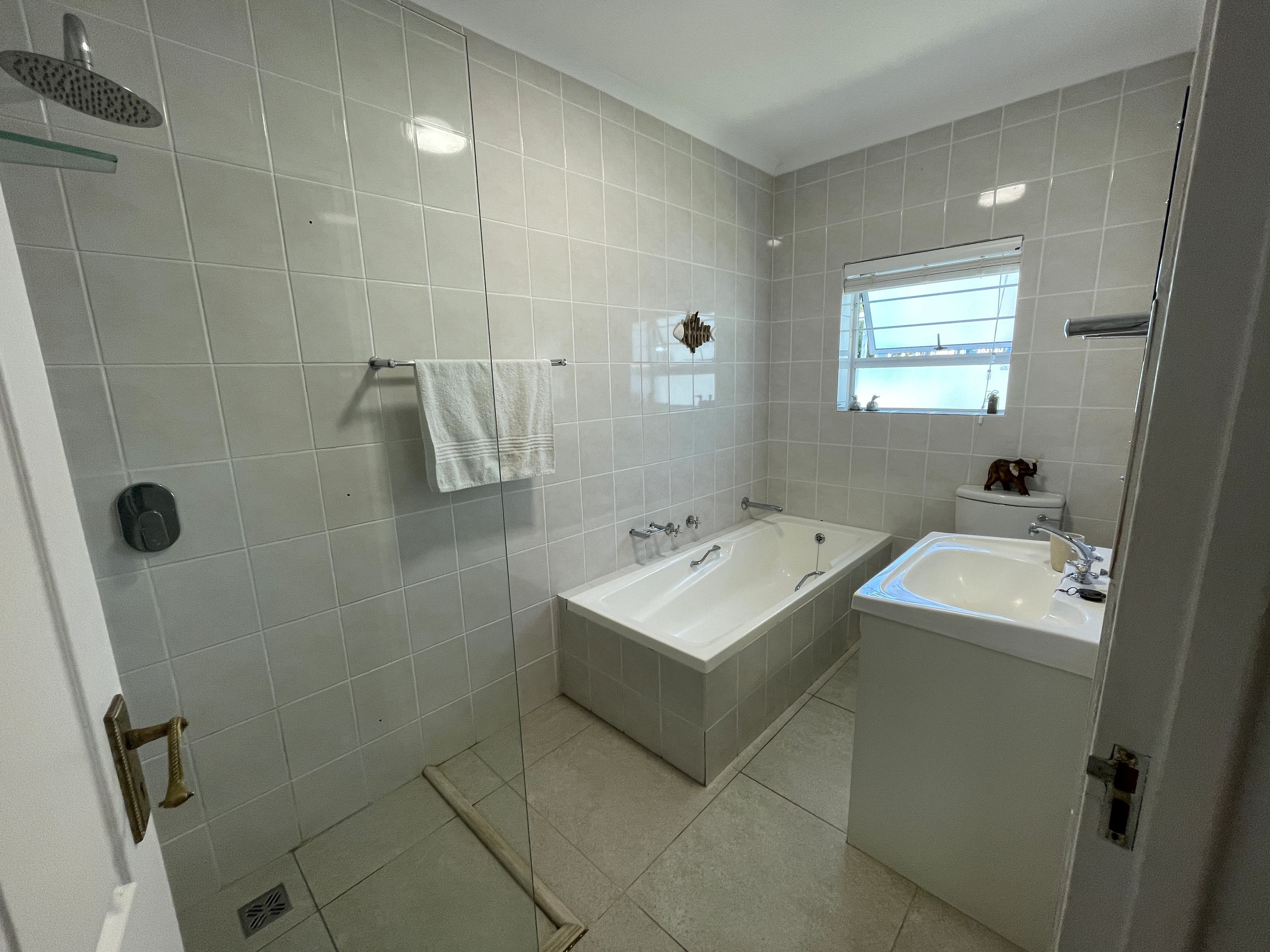 Bedrooms: Main Bedroom (King XL, en-suite), Room 1 (King), Room 2 (Double), Room 3 (Queen). Only the main bedroom is en-suite; the other three bedrooms share a full bathroom with bath, shower, and toilet, plus there is an additional guest loo. Linens and towels are provided, along with hand wash and body wash.