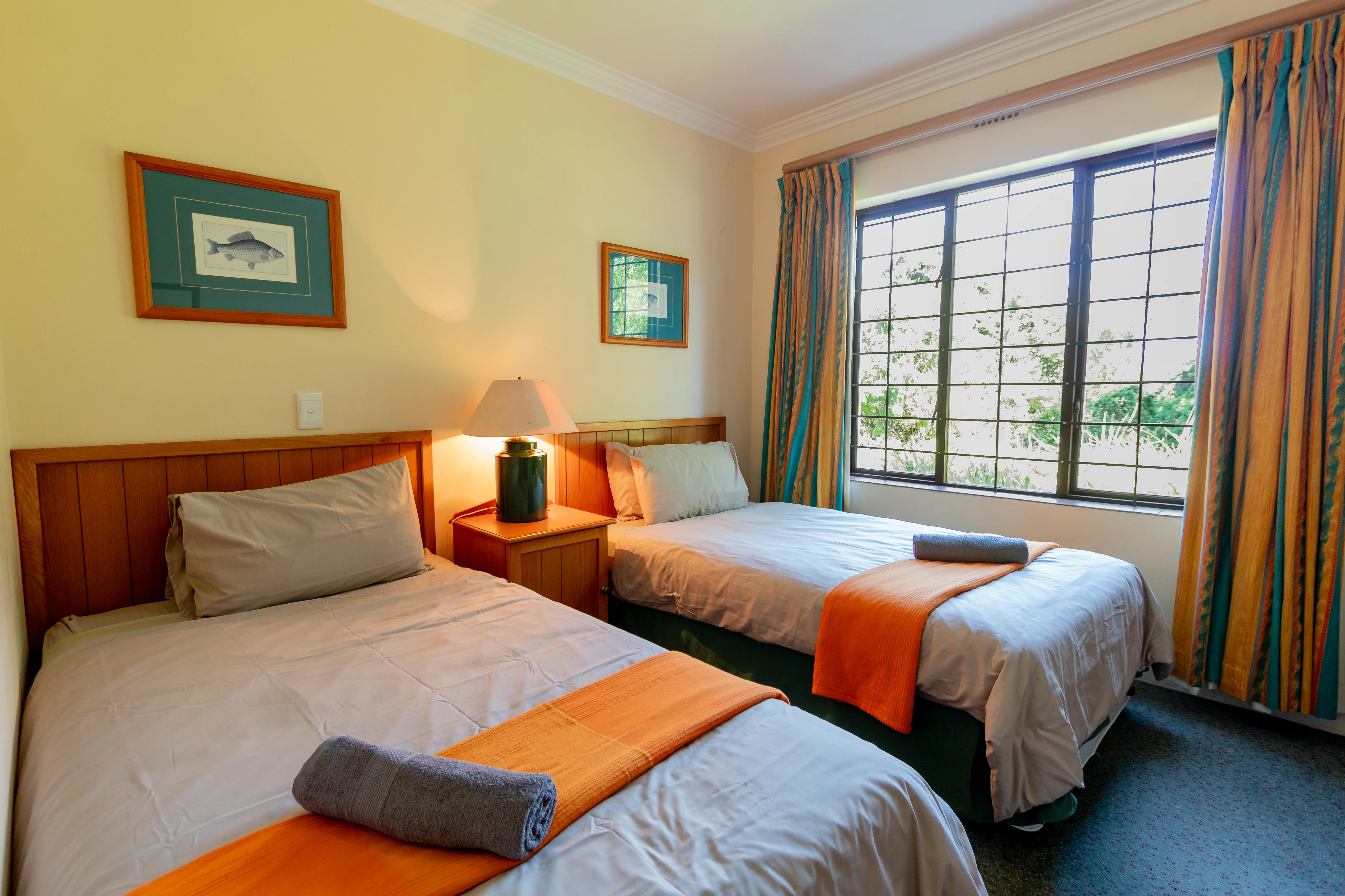 River’s Drift is a peaceful ground-floor, three-bedroom river-lodge apartment overlooking
