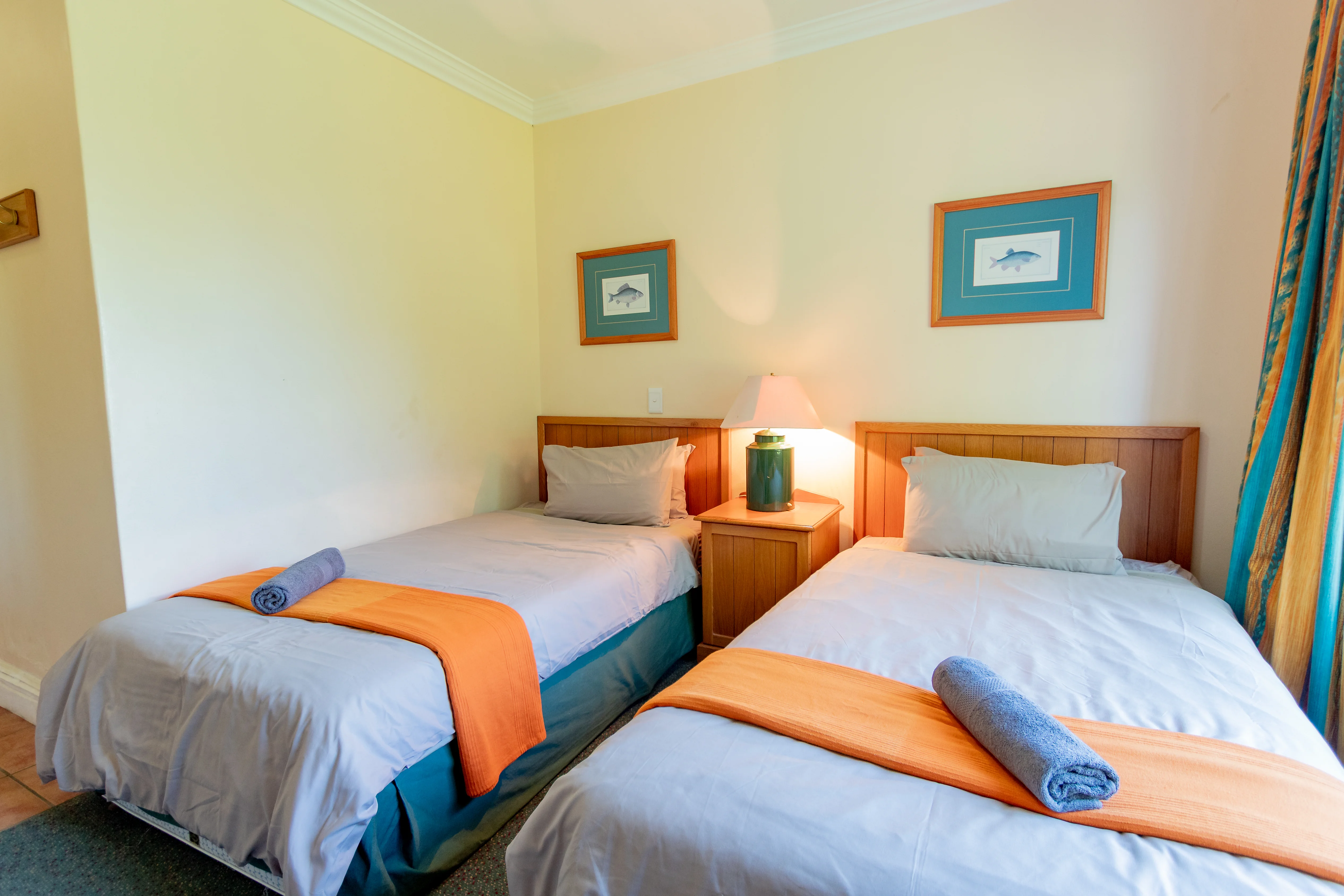 River’s Drift is a peaceful ground-floor, three-bedroom river-lodge apartment overlooking lush gardens beside the Keurbooms River. It sleeps up to eight guests, with all bedrooms en suite. Just 20 m from the pool and a short walk to the Keurbooms beach, it is ideal for those seeking a calm, comfortable river escape.