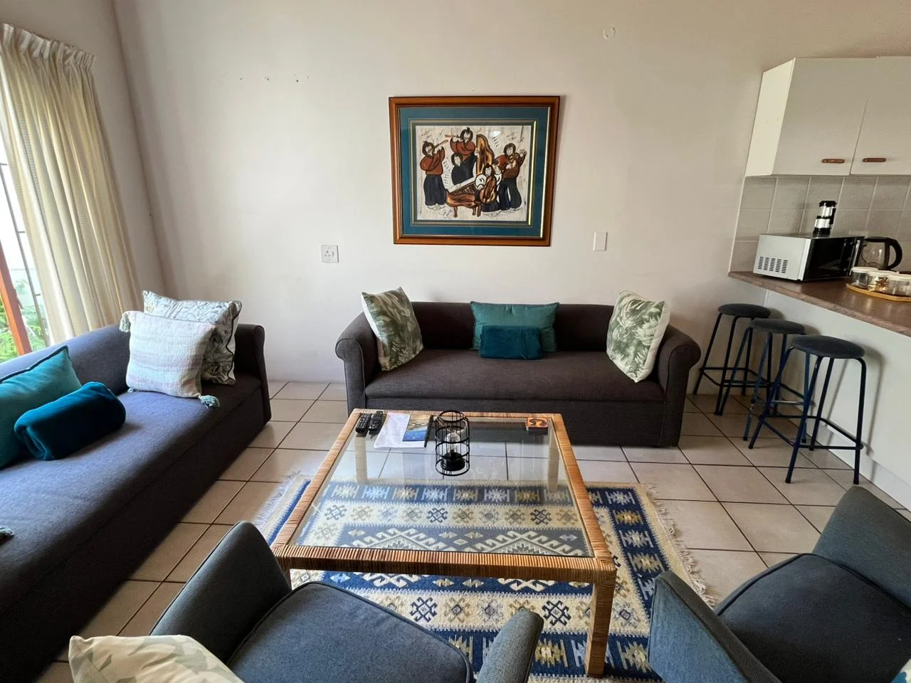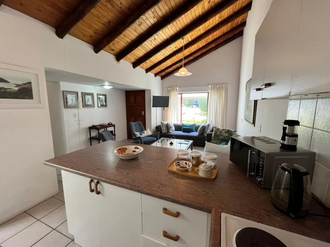for light meals. The cozy lounge includes a TV with full DStv access and streaming apps such as