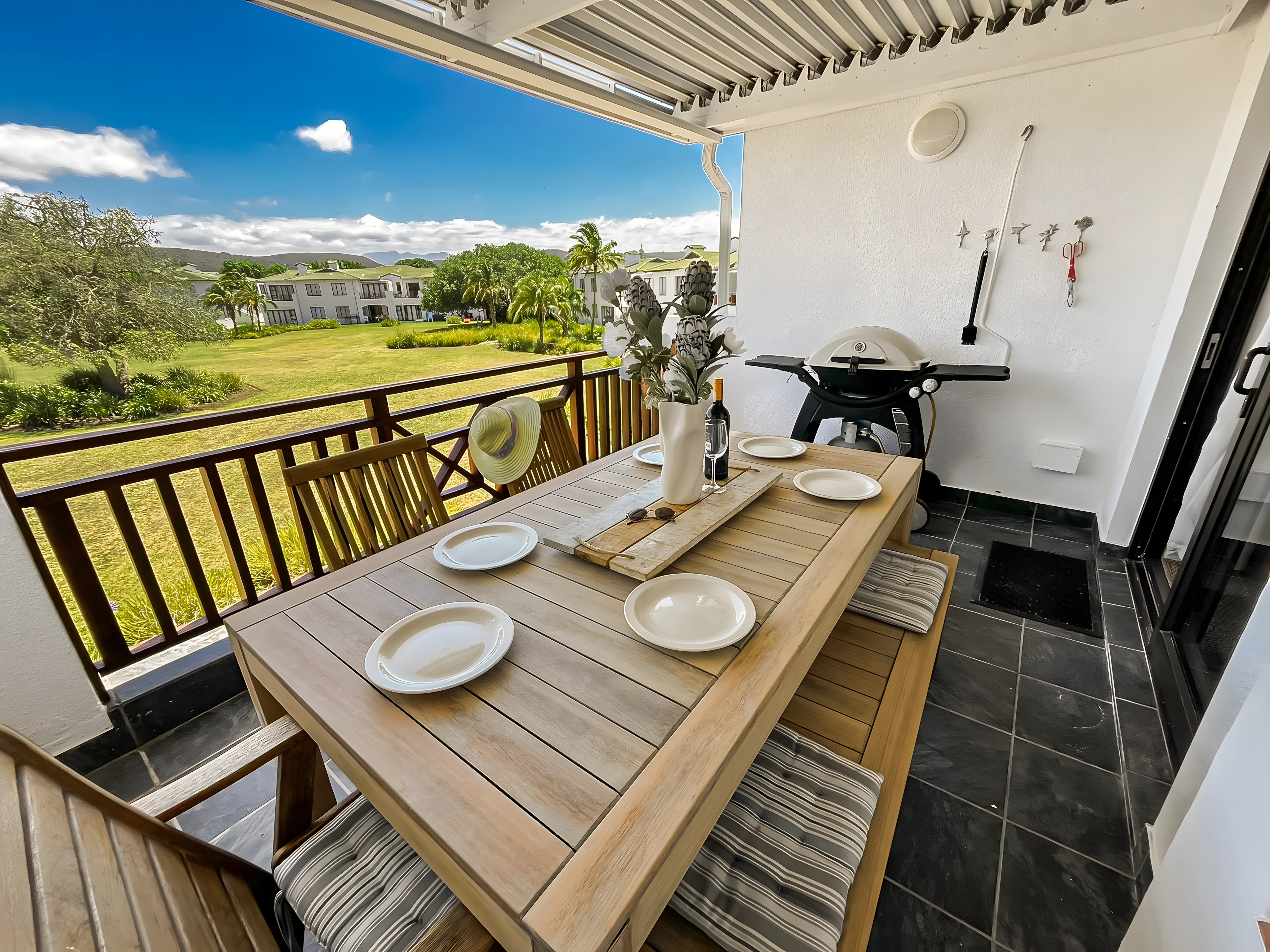 See everything this place offers, from scenic views and Wi-Fi to the outdoor braai, pool access, kids playground and tennis court access.
