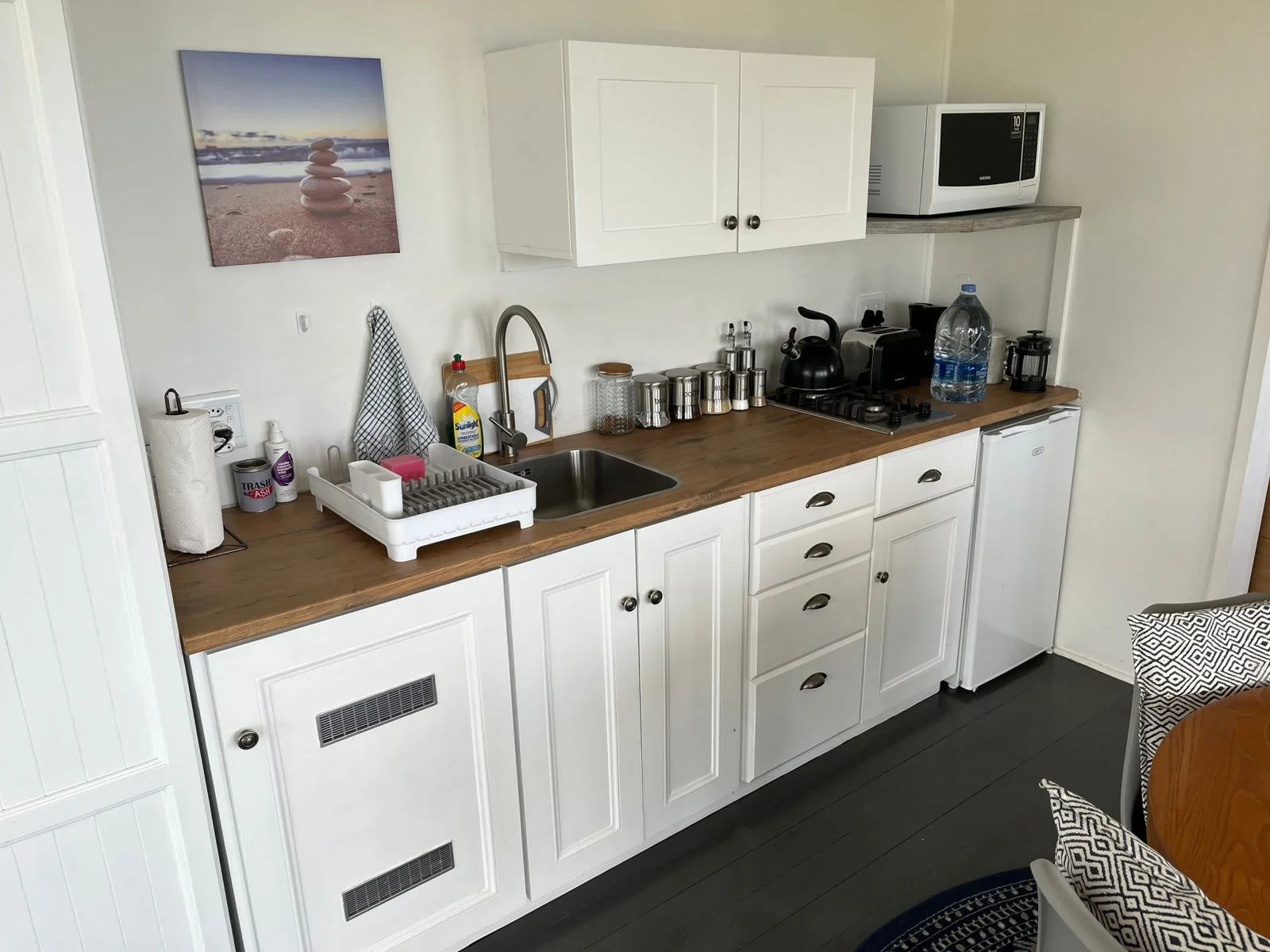 See everything this cabin offers, from cliffside ocean views and hiking trails to the private deck, well equipped kitchennette, and peaceful setting.