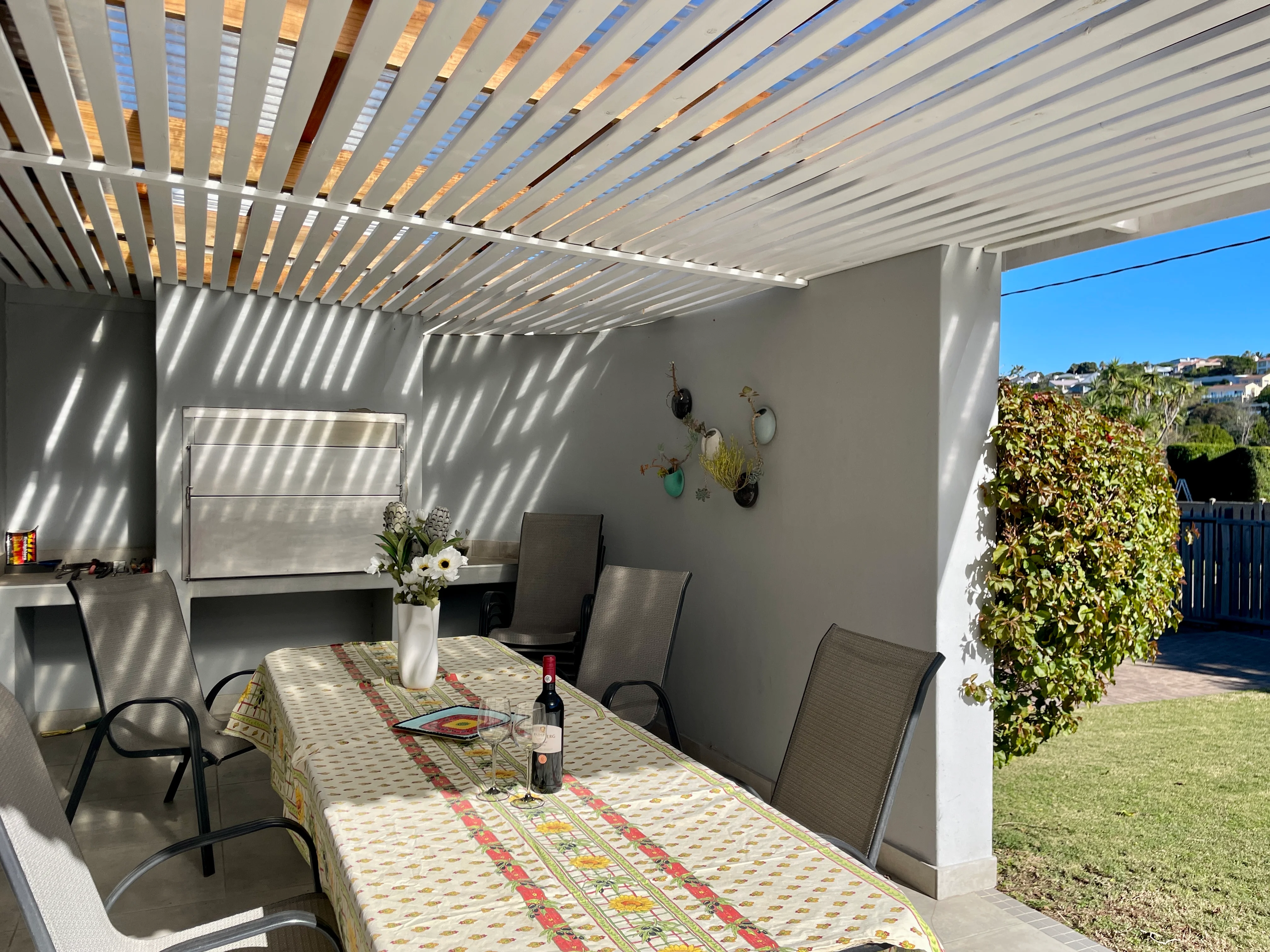 The outdoor area features a generous patio with a built-in braai, ideal for relaxed outdoor
