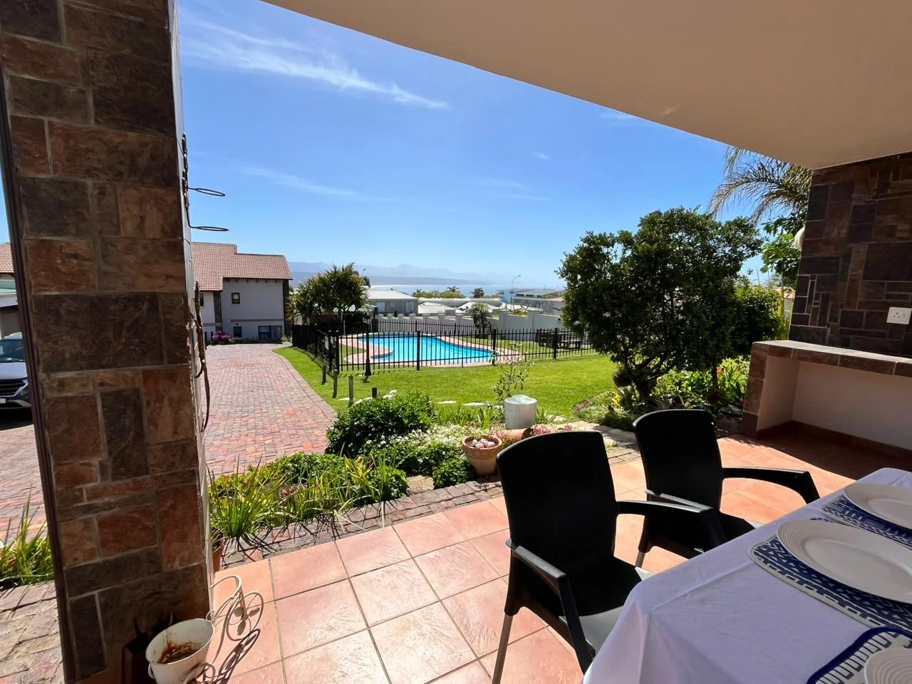 outdoor braai, and pool access.